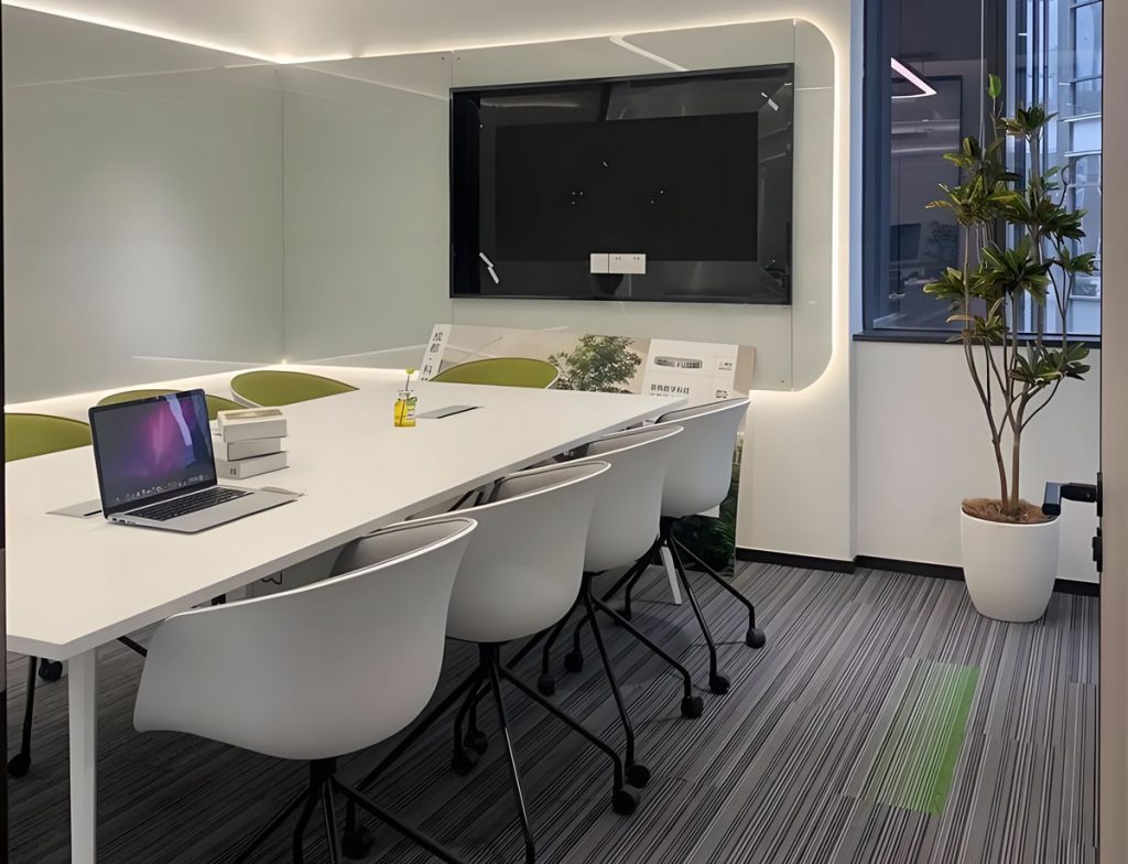 Team members brainstorming in our state-of-the-art meeting room designed for productive discussions.